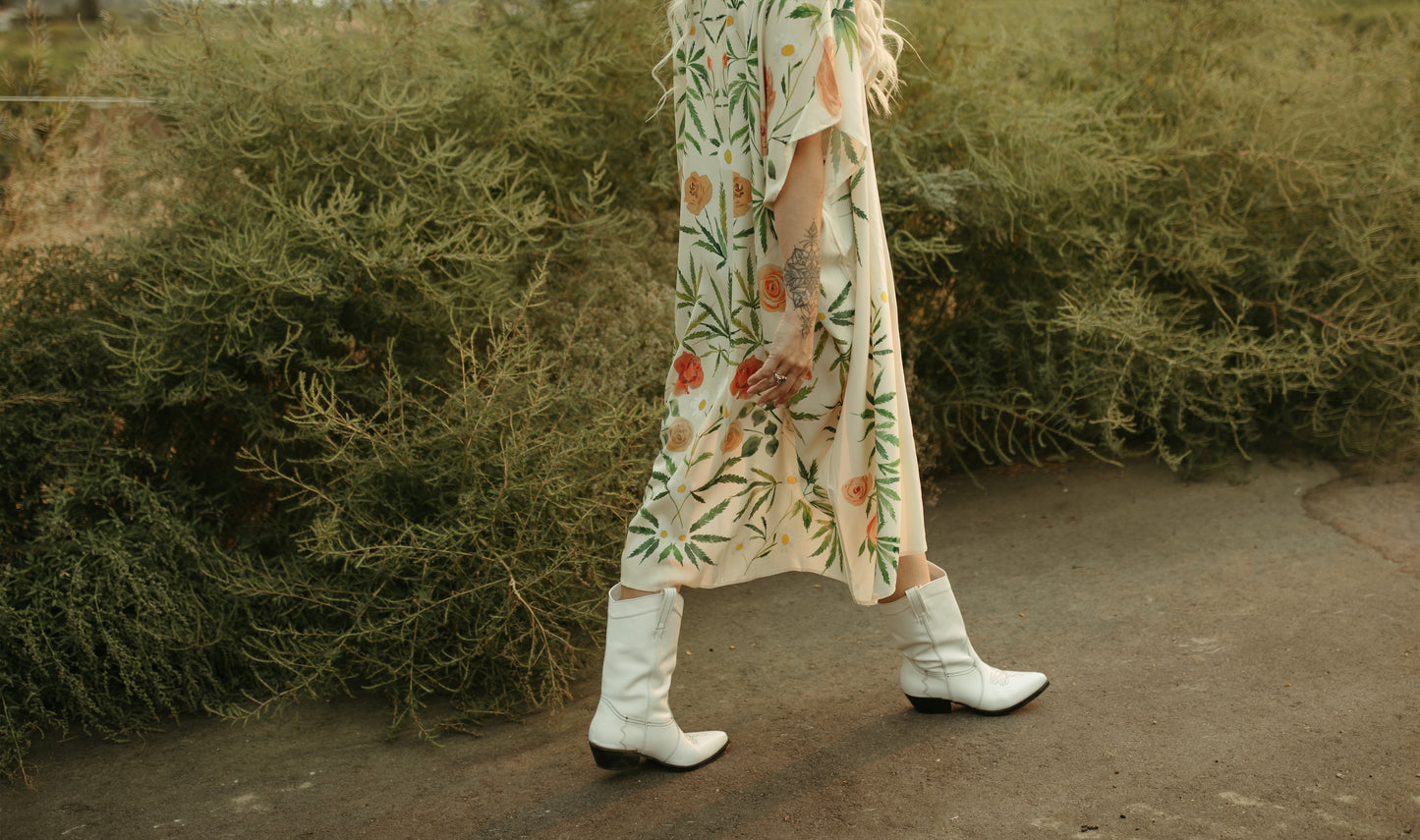 For the Healing, Free Spirit... A soft, boho blend of roses, chamomile, and gentle cannabis blooms — this print feels like sunshine on your skin and deep breaths in the garden. For the women who ground, heal, and bloom in their own sweet time.