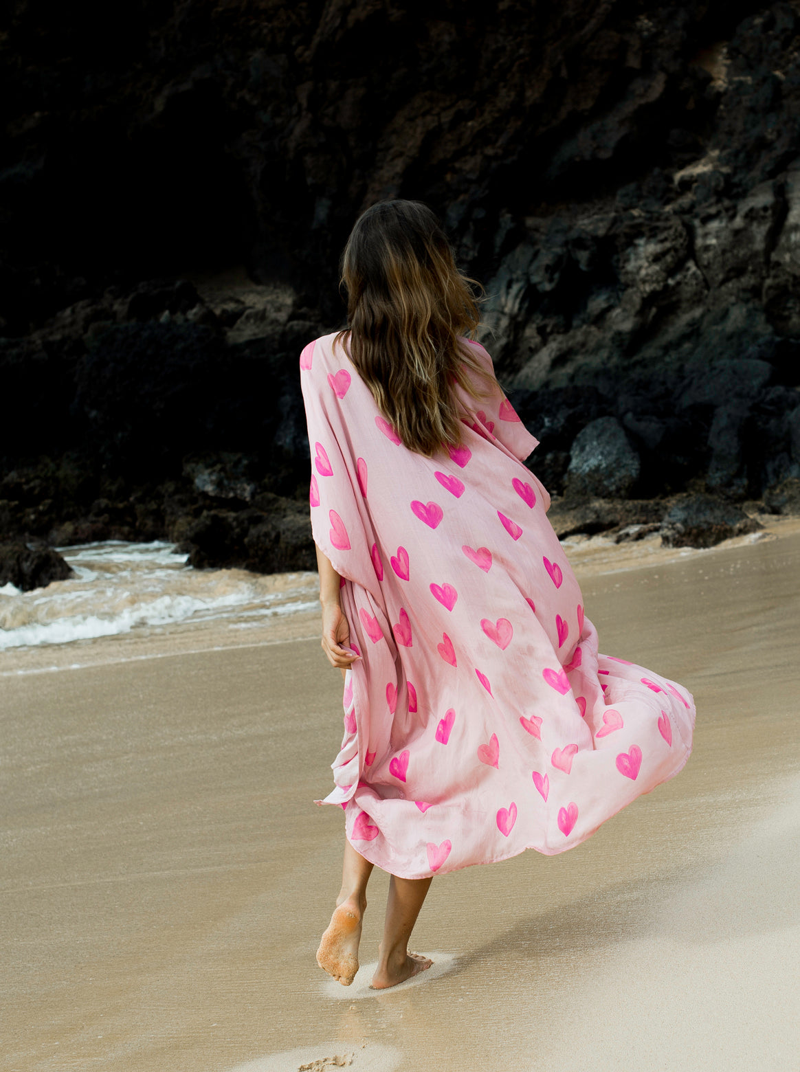 Slip into sweetness with The Heart Duster — a dreamy, playful, and endlessly charming piece for the girl who loves love, lives in colour, and leads with her heart wide open. Hand-painted in soft, painterly strokes, this print feels like a little love note you get to wear.