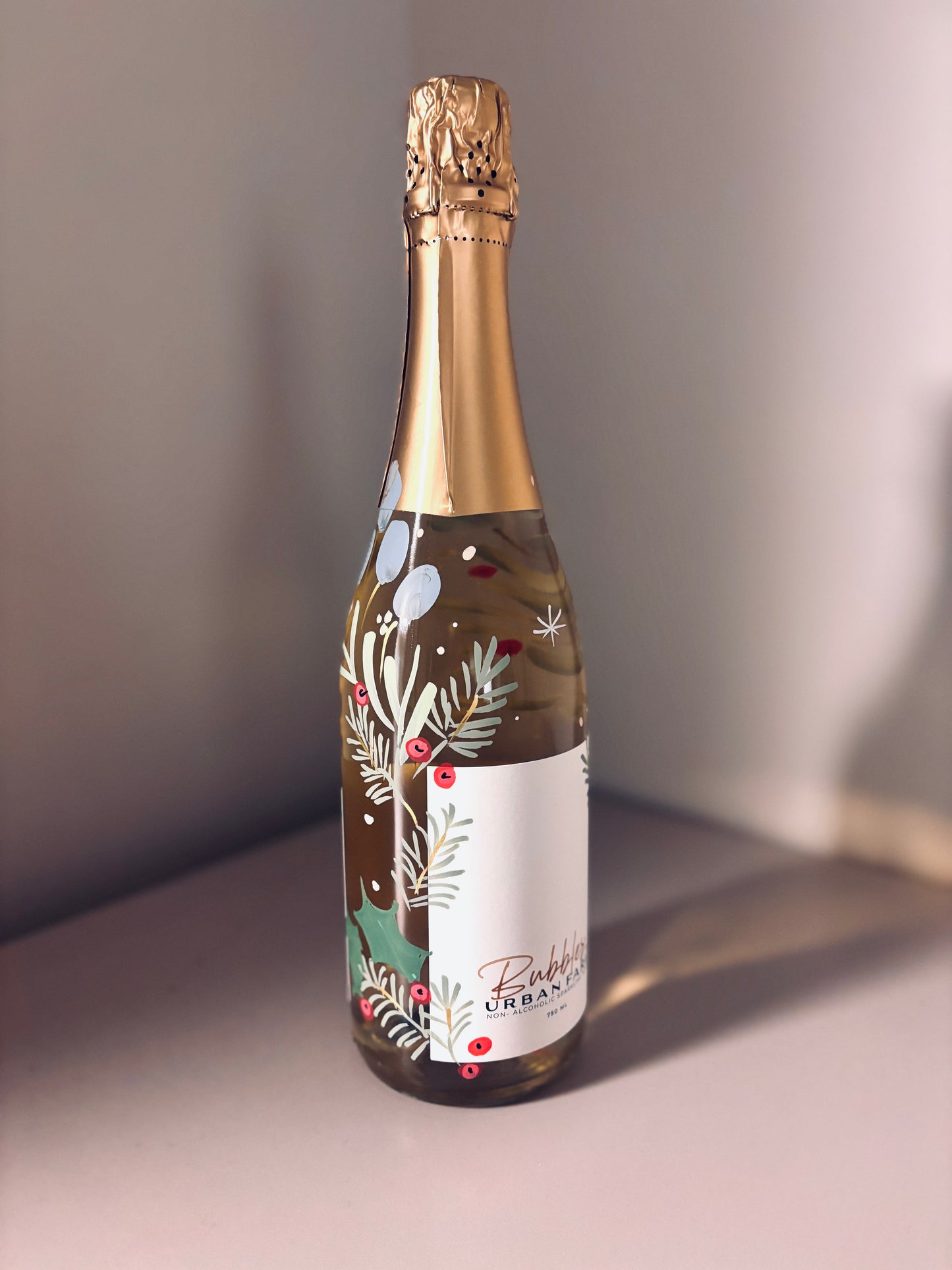 custom painted bottle • hand painted champagne bottle • sparkling wine art • wedding gift idea • engagement gift • baby shower gift • bridal shower décor • corporate gifting • keepsake bottle • painted champagne • custom bottle art • Glimmer de-alcoholized bottle art • custom wine bottle painting • live event painting • guest portraits • luxury live art